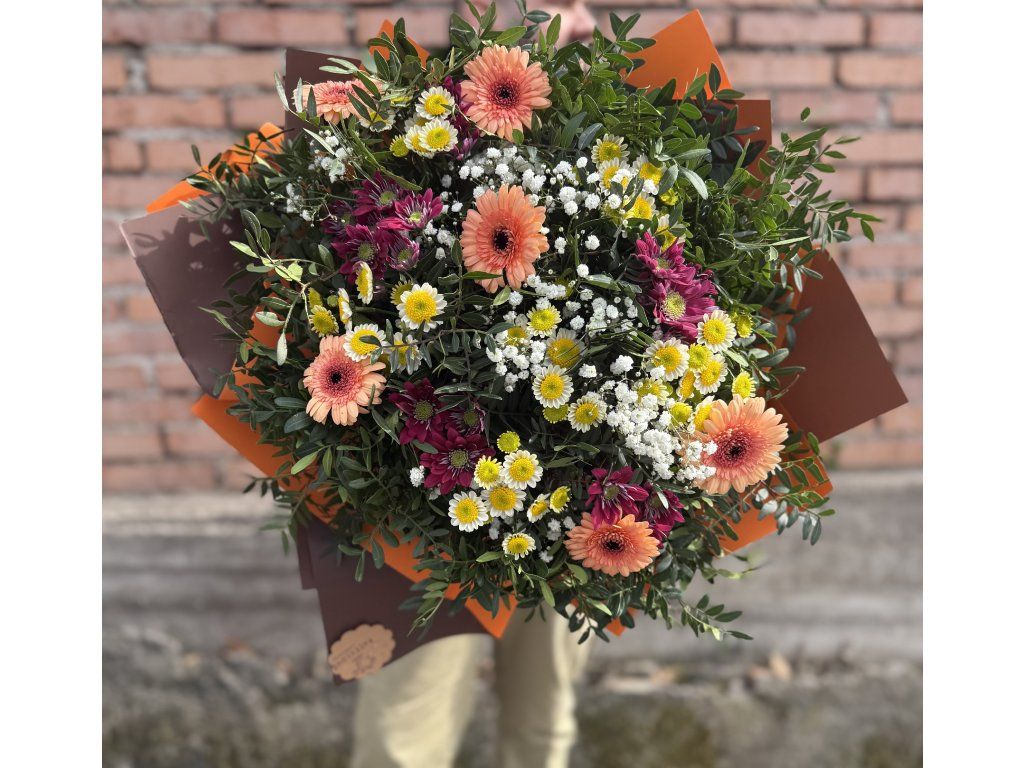 Každý kytice je opravdu obrovská a je originál z čerstvě dovezených květin od dodavatele. Má minimálně 42 stonků a obsahuje obvykle kombinaci druhů jako jsou gerbery, chryzantémy, nevěstin závoj, pistácie či růže.